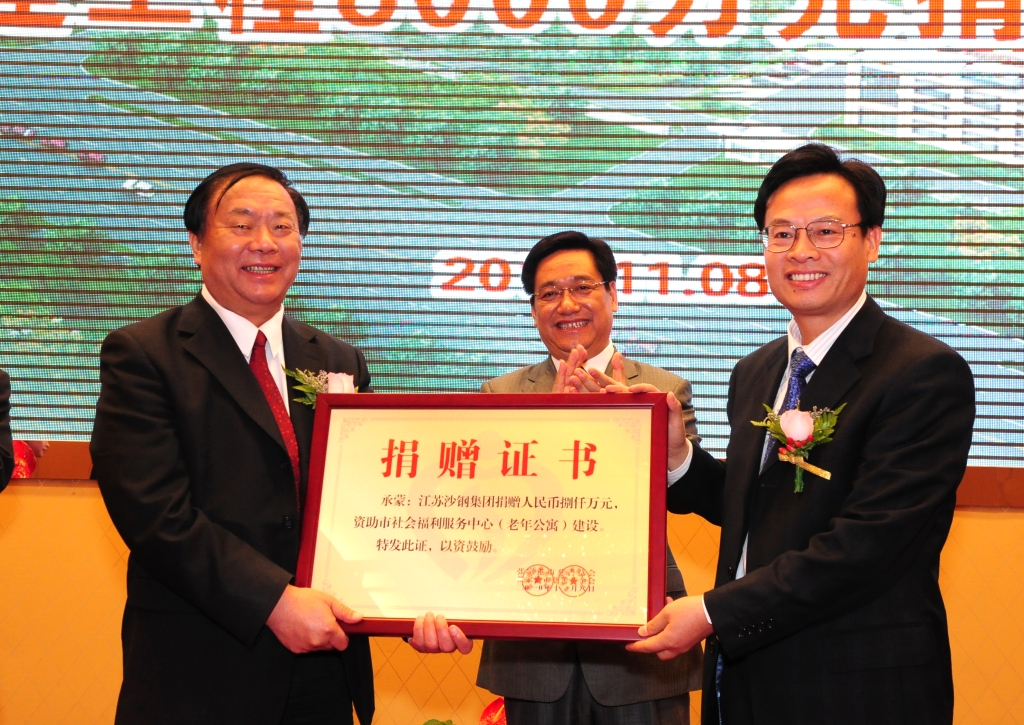 由于沙鋼在慈善公益事業方面所做的突出貢獻,彰顯了全國最大民營鋼鐵企業的鐵骨柔情,連年被評為國家、省市慈善事業先進單位,榮膺“中華慈善突出貢獻獎”等稱號,產生了顯著的企業品牌輻射效應。